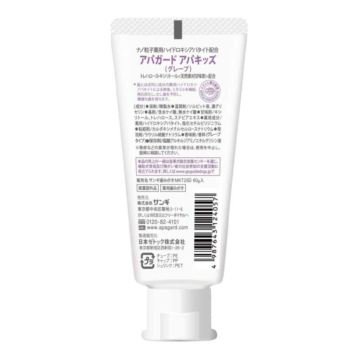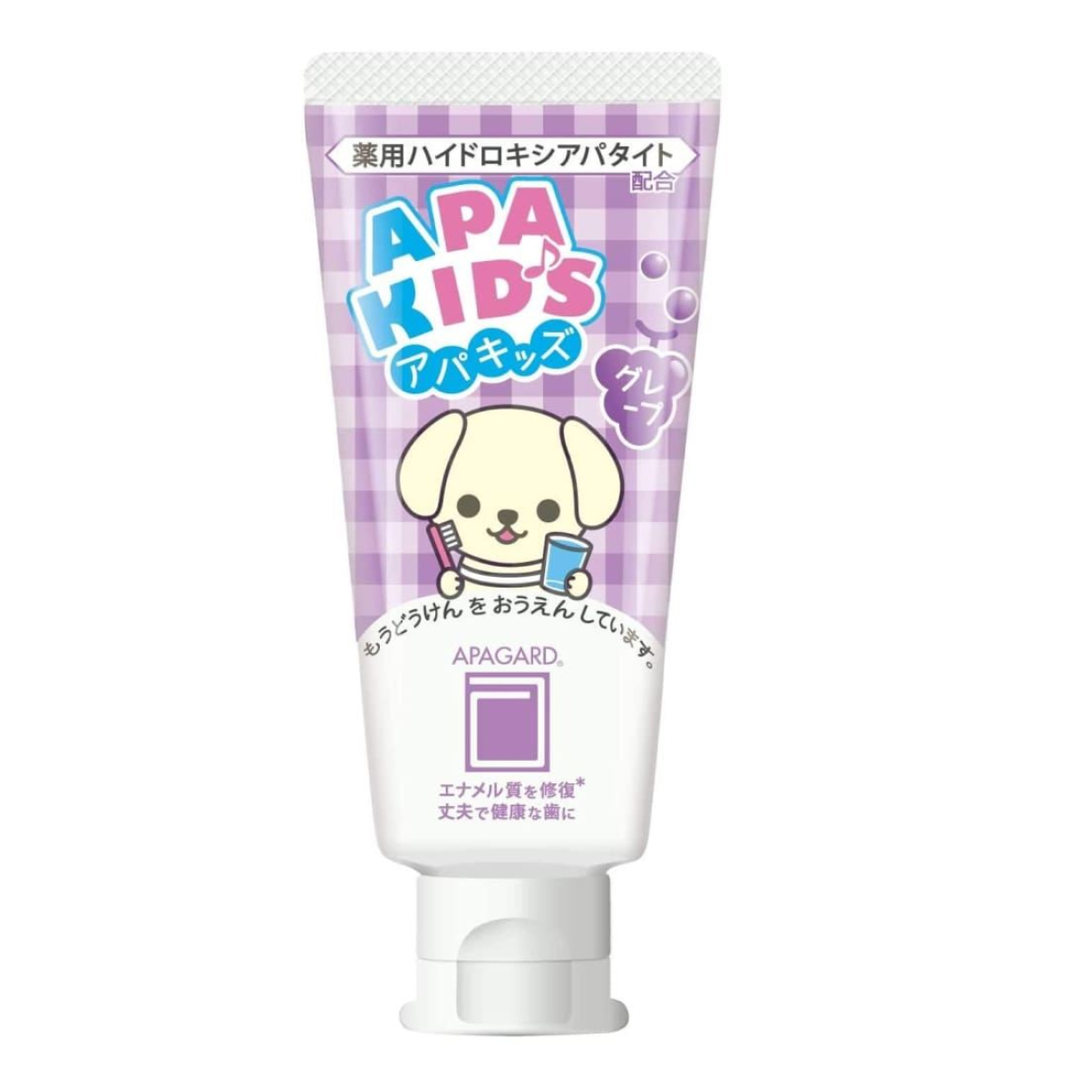 Дитяча японська зубна паста зі смаком винограду, створена для догляду за молочними зубами та щойно прорізаними постійними зубами, яка наповнює зубну емаль мінералами та захищає зуби від появи карієсу. Паста не містить фтору.