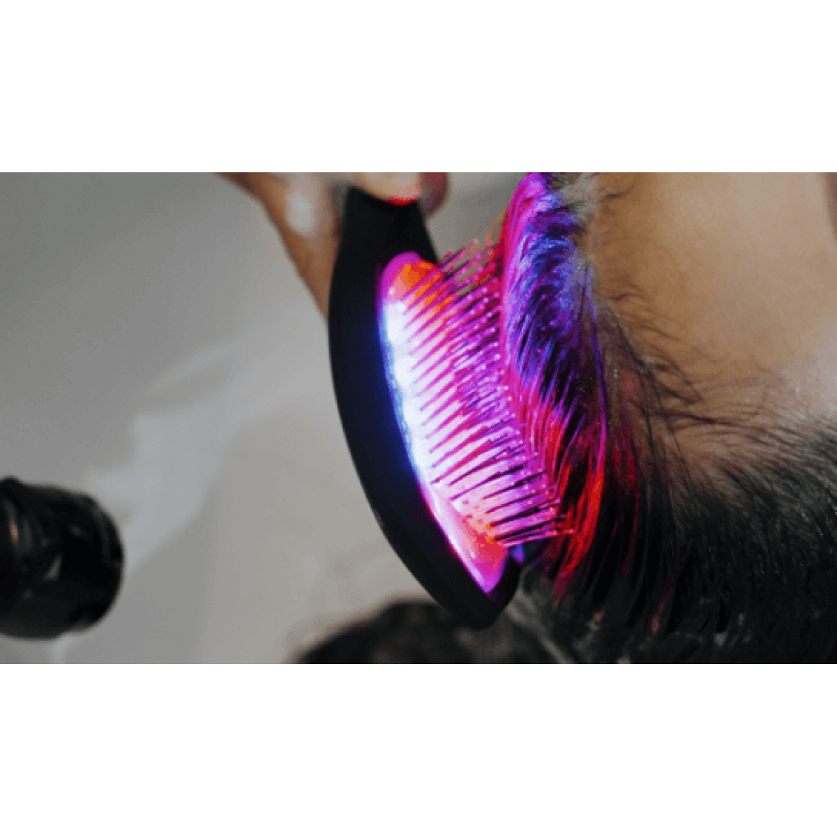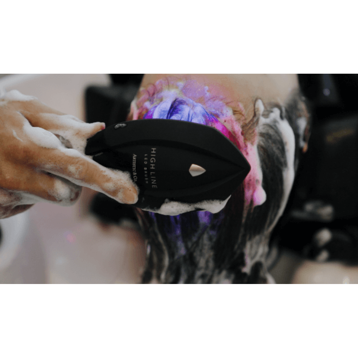 Водонепроникна інноваційна щітка для волосся, в якій поєднано світлодіодний вплив, а також спеціальну форму щетинок, що в результаті дозволяє забезпечити ретельне очищення шкіри голови, поліпшення стану довжини волосся та покращену роботу волосяних фолікулів.