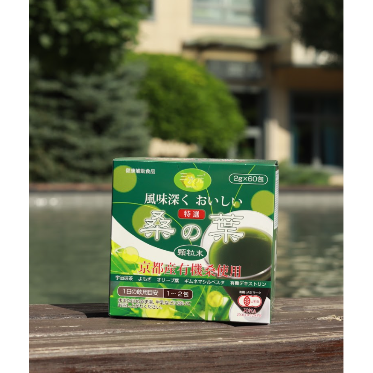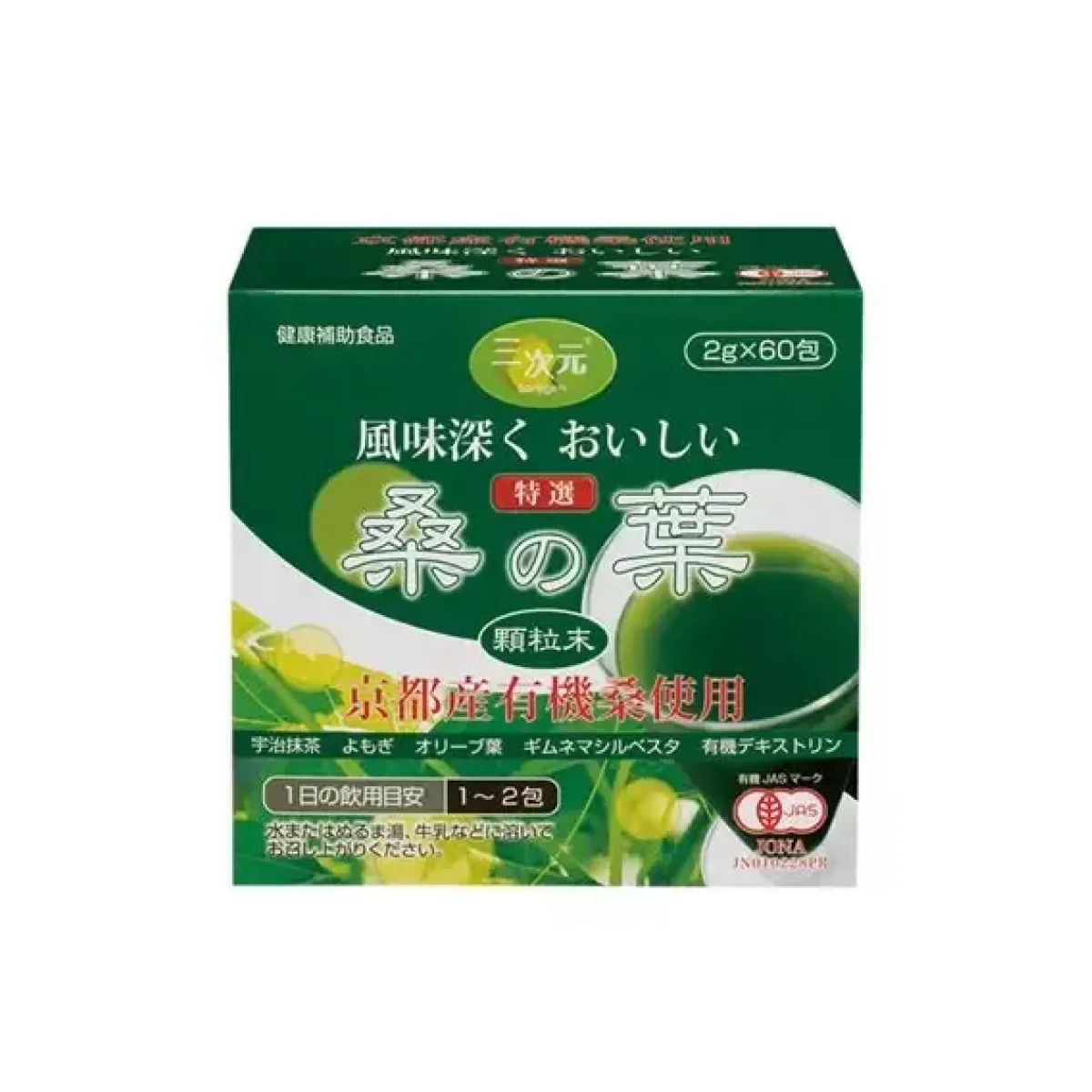 Organic mulberry leaves (made in Japan), organic dextrin, wormwood top leaves, matcha, gymnema sylvestre leaves, olive leaves.