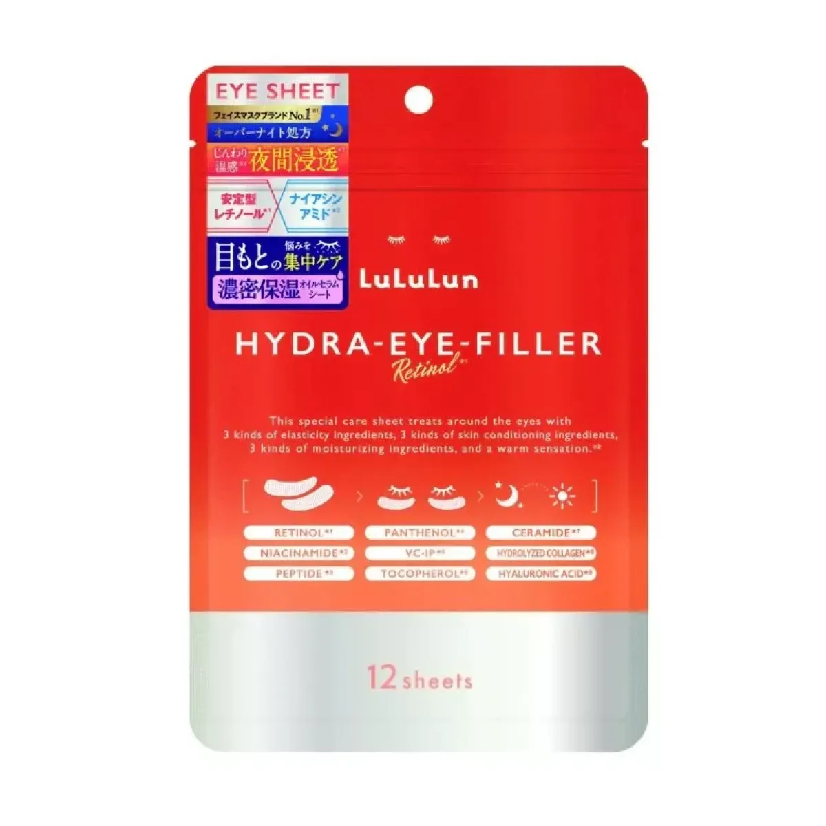LULULUN Hydra Eye Filler нічні патчі з ретинолом та ніацинамідом, 12 шт