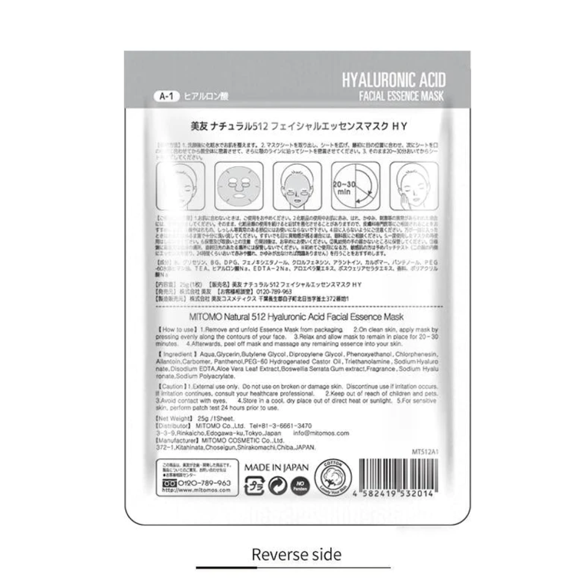 MITOMO 512 тканинна маска з гіалуроновою кислотою, 1 шт