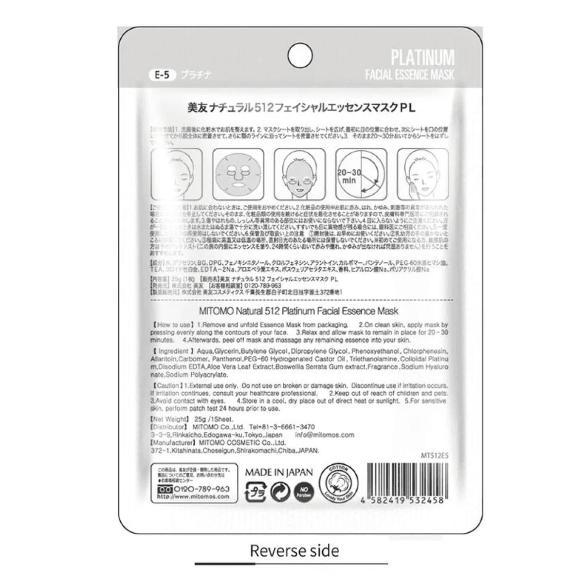 MITOMO 512 тканинна маска з колоїдною платиною, 1 шт