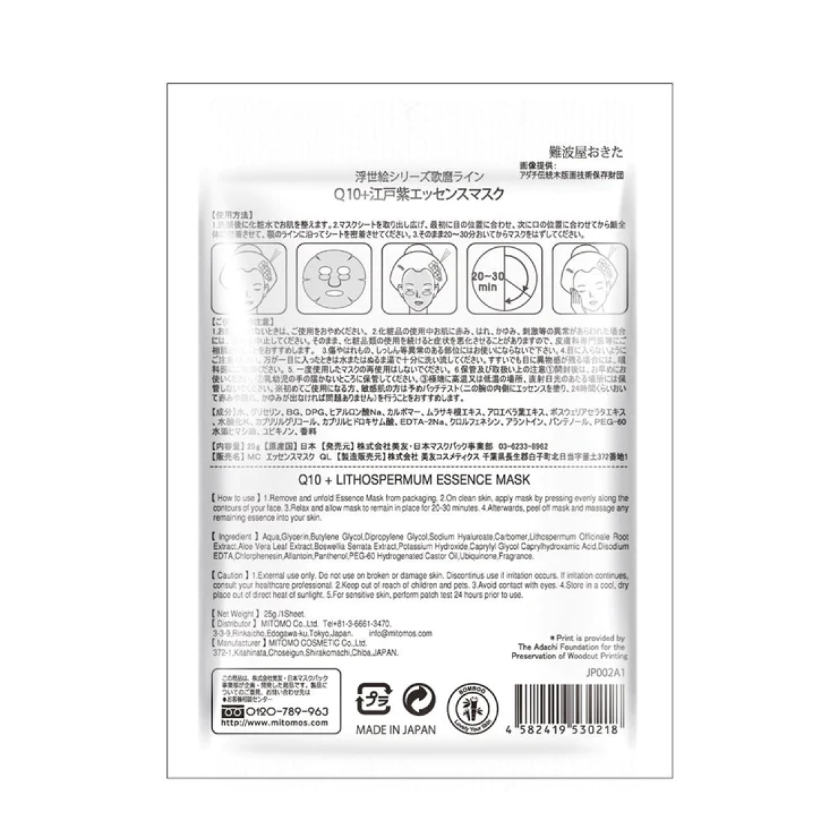 MITOMO тканинна маска японка "Q10+літоспермум" 1 шт