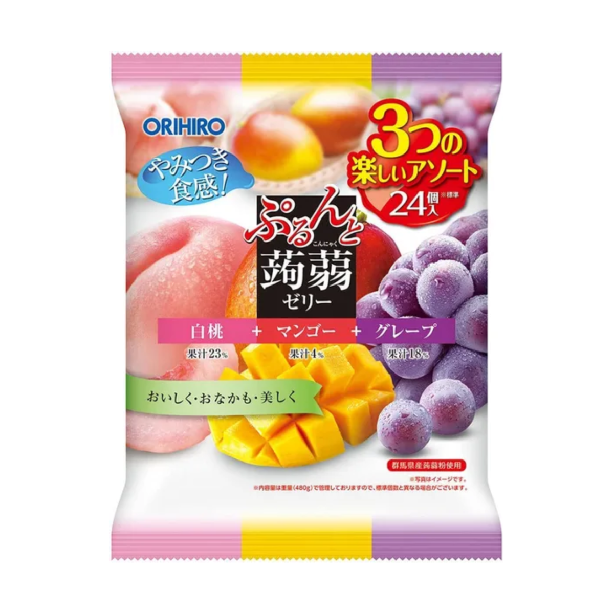 ORIHIRO Purunto Konjac Jelly низькокалорійне конняку-желе (персик, манго, виноград), 480 г
