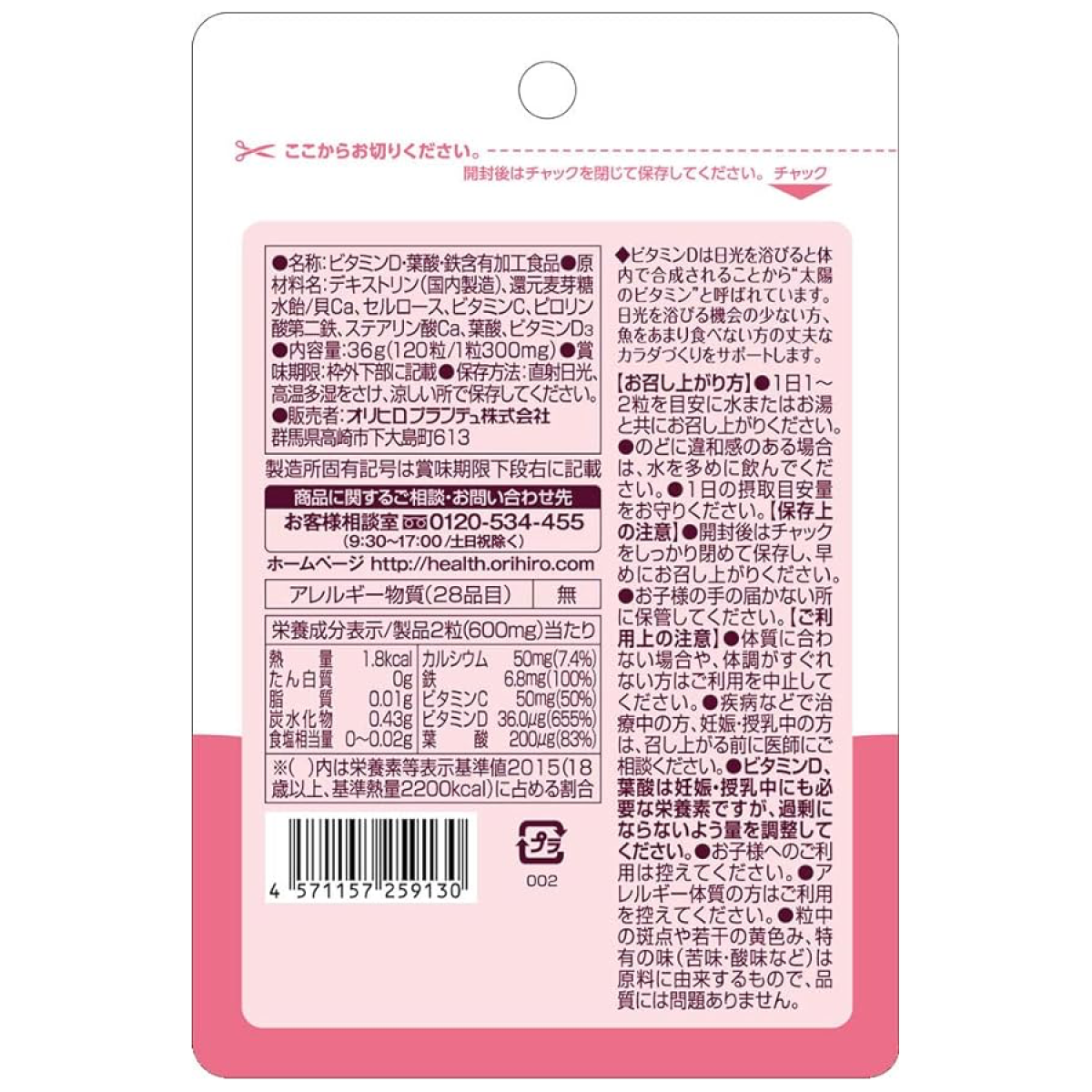 Особливості ORIHIRO вітамін Д, фолієва кислота, залізо: