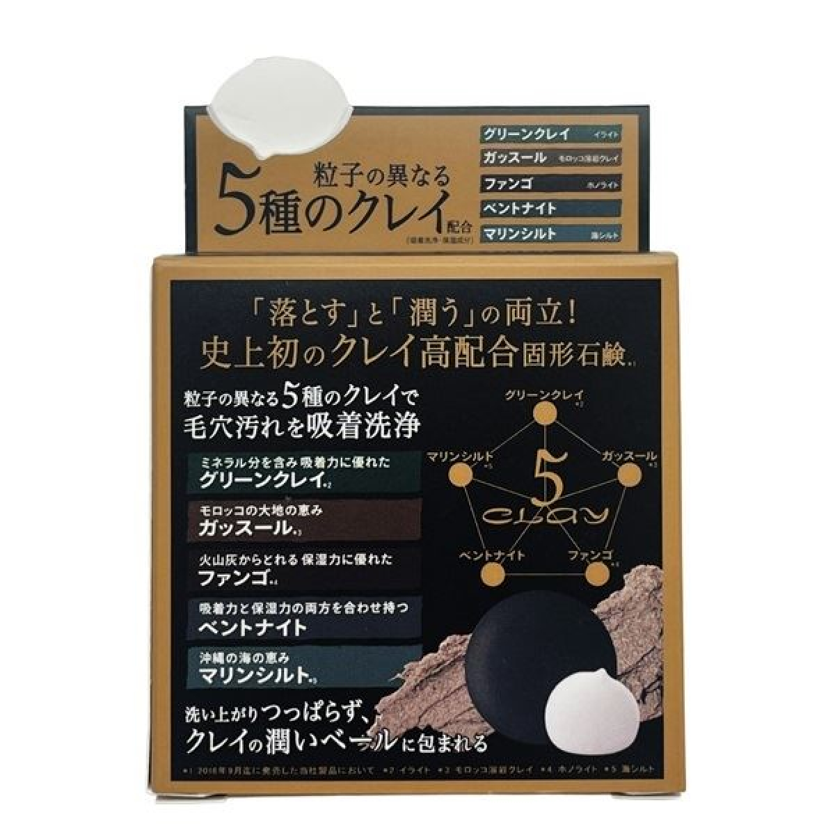Potassium-containing soap base, water, bentonite, kaolin, lauric acid, honolite, sea silt, glycerin, illite, moroccan lava clay, charcoal, papain, hot spring water, jojoba seed oil, grape seed oil, shea butter, squalane, lavender flower extract, rosemary leaf extract, roman chamomile flower extract, artichoke leaf extract, citric acid, tocopherol, phenoxyethanol, dextrin, BG, fragrance.