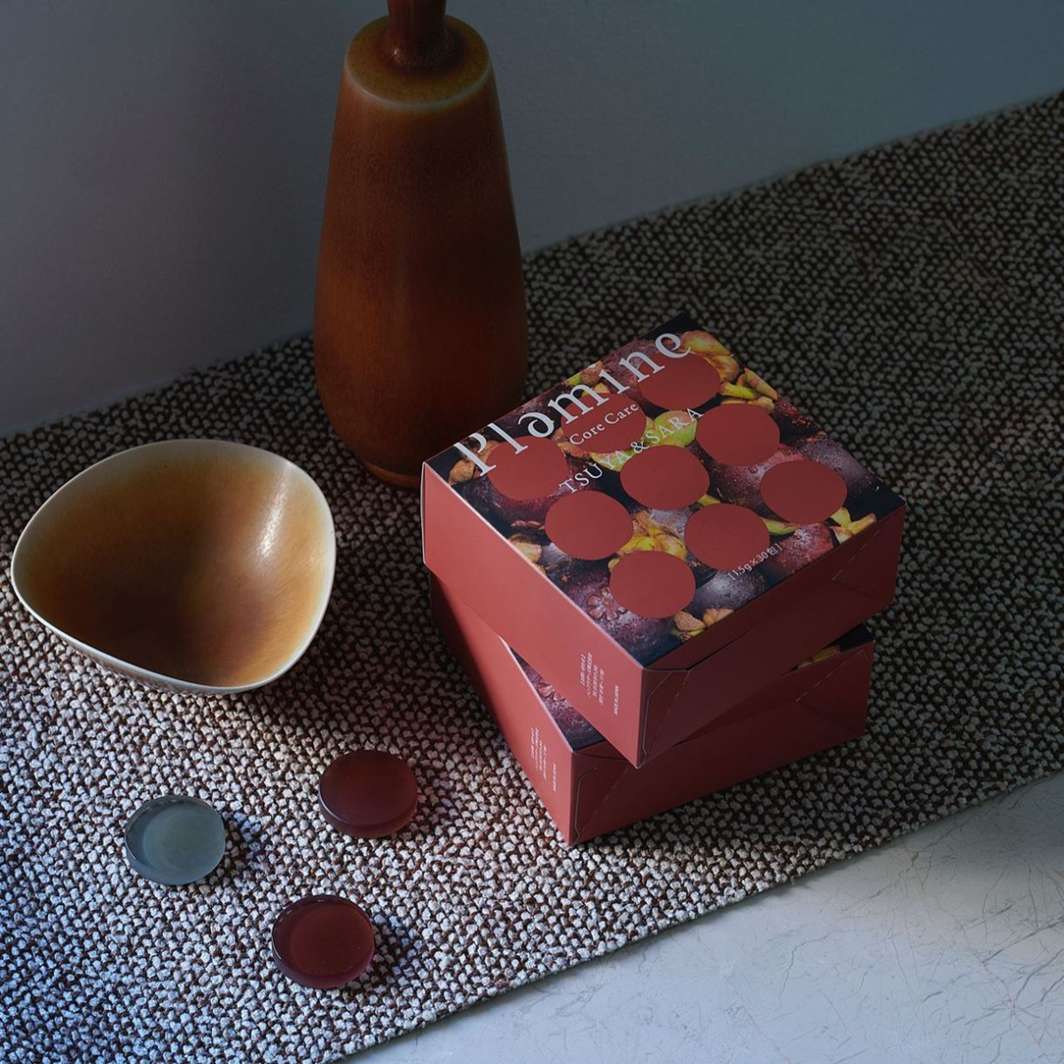 Egg yolk protein hydrolyzate (contains eggs) (manufactured in Japan), reduced palatinose, brown sugar, mangosteen powder, cacao powder, dextrin, collagen (including gelatin, derived from fish), black sesame, ginger powder/trehalose, flavoring, sweetness fee (stevia).
