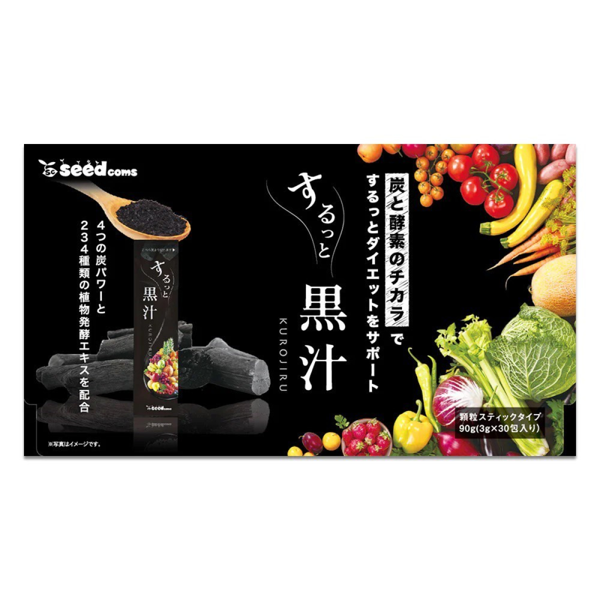 Charcoal, dextrin with reduced maltose content, malt dextrin, powder of young barley leaves, brown sugar, powder of sterilized lactic acid bacteria, black maca extract powder, activated carbon powder from coconut shell, akamatsu charcoal, powdered black vinegar, honey powder (dextrin, honey), black ginger powder, black currant extract, extracts of fermented plants (dextrin, sugar honey, brown sugar, oligosaccharides, yams, corn, dokudami, hasa leaves, korean carrots, etc.), sweetener (stevia) (including yamamo apple, kiwi, orange, sesame and cashew nuts).