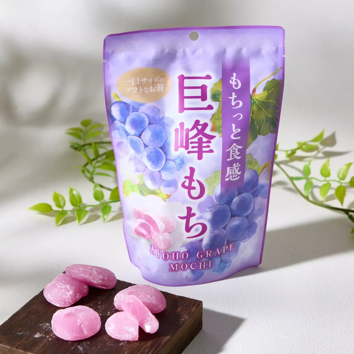 Мочі з ароматом винограду сорту Кьохо — одного з найвишуканіших, найсоковитіших і найароматніших сортів винограду в Японії. Мочі - це традиційна база для десертів в японській кухні. Особливий сорт рису з низьким вмістом амілози після варіння подрібнюють товкачем з додаванням невеликої кількості води, що перетворює його на дуже клейку, гладку, схожу на тісто масу, надзвичайно пластичну - це і є мочі. Запаковано порційно.