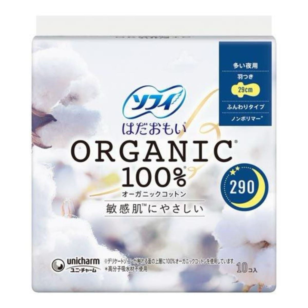 UNICHARM Sofy Organic Cotton Night Use органічні нічні гігієнічні прокладки 29 см, 10 шт