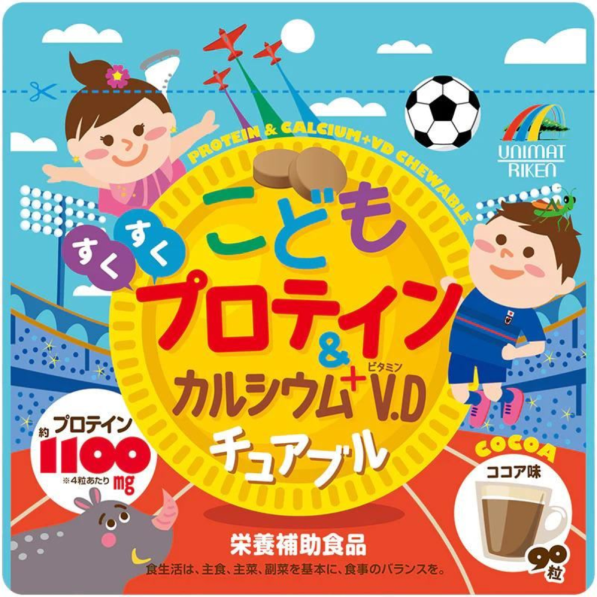UNIMAT RIKEN Protein Calcium Vitamin D дитячі жувальні вітаміни з кальцієм та вітаміном Д, 90 шт