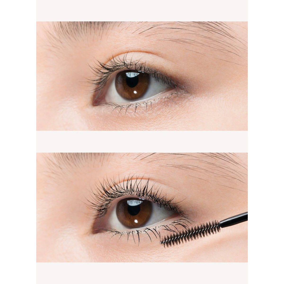 Прикласти щіточку до основи вій, легкими рухами повільно підтягнути її догори, щоб нанести продукт на кінчики вій. Для нанесення засобу на нижні вії, тримати щіточку вертикально, наносячи продукт за допомогою її кінчика. Повторити дію декілька разів.